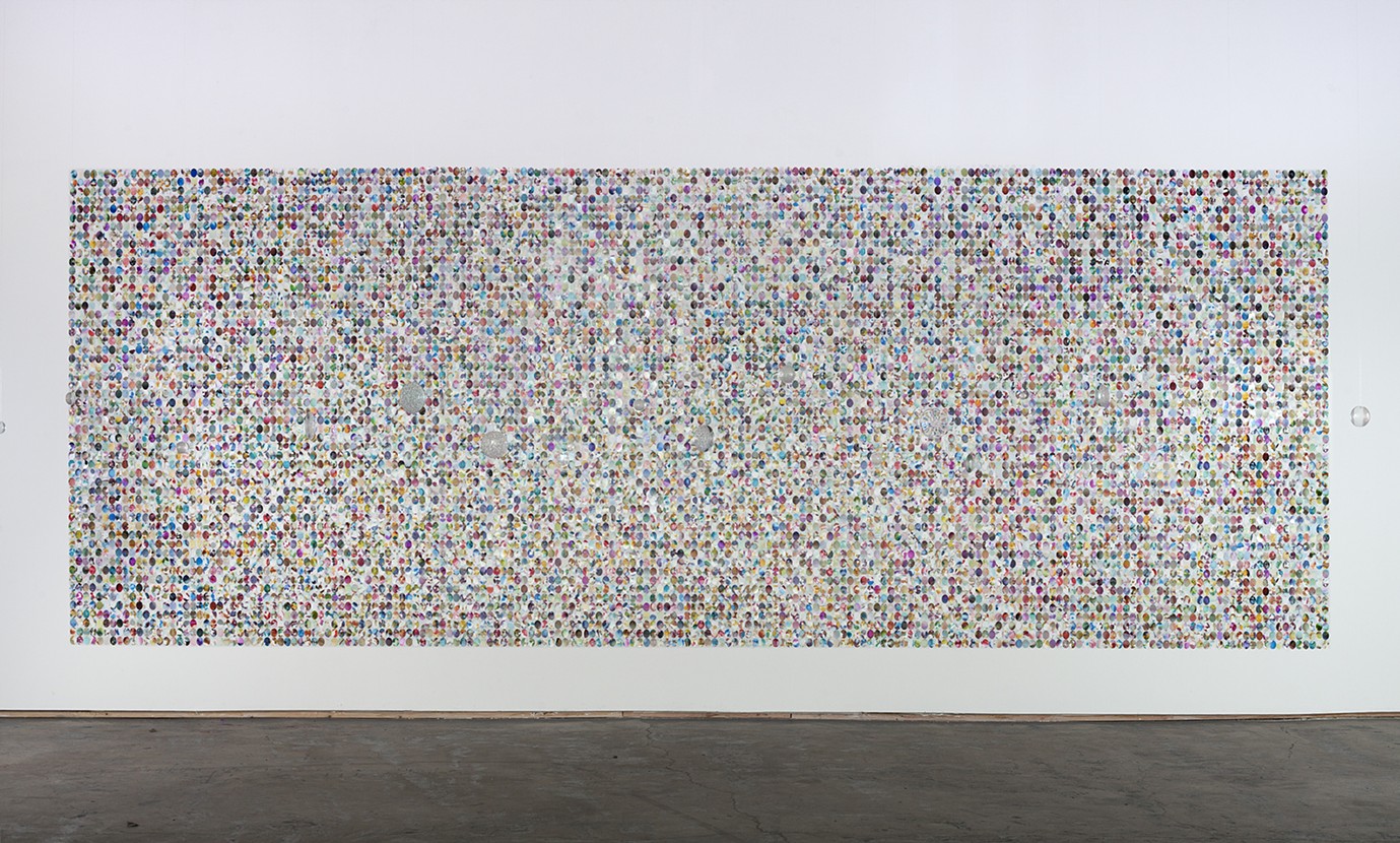 Buttons, Electric Motor, Waxed Linen Thread, Mirror 108” x 300” x 84”